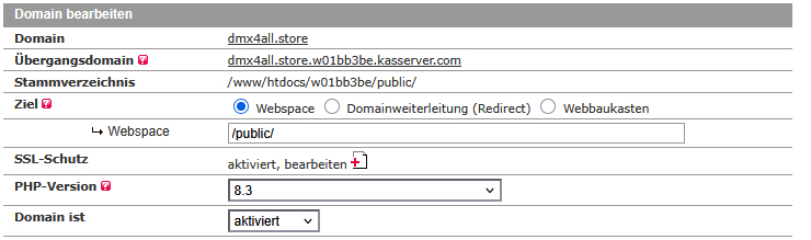 ich versuche meine Domäne von www.beispiel/public auf www.beispiel.de zu ändern.