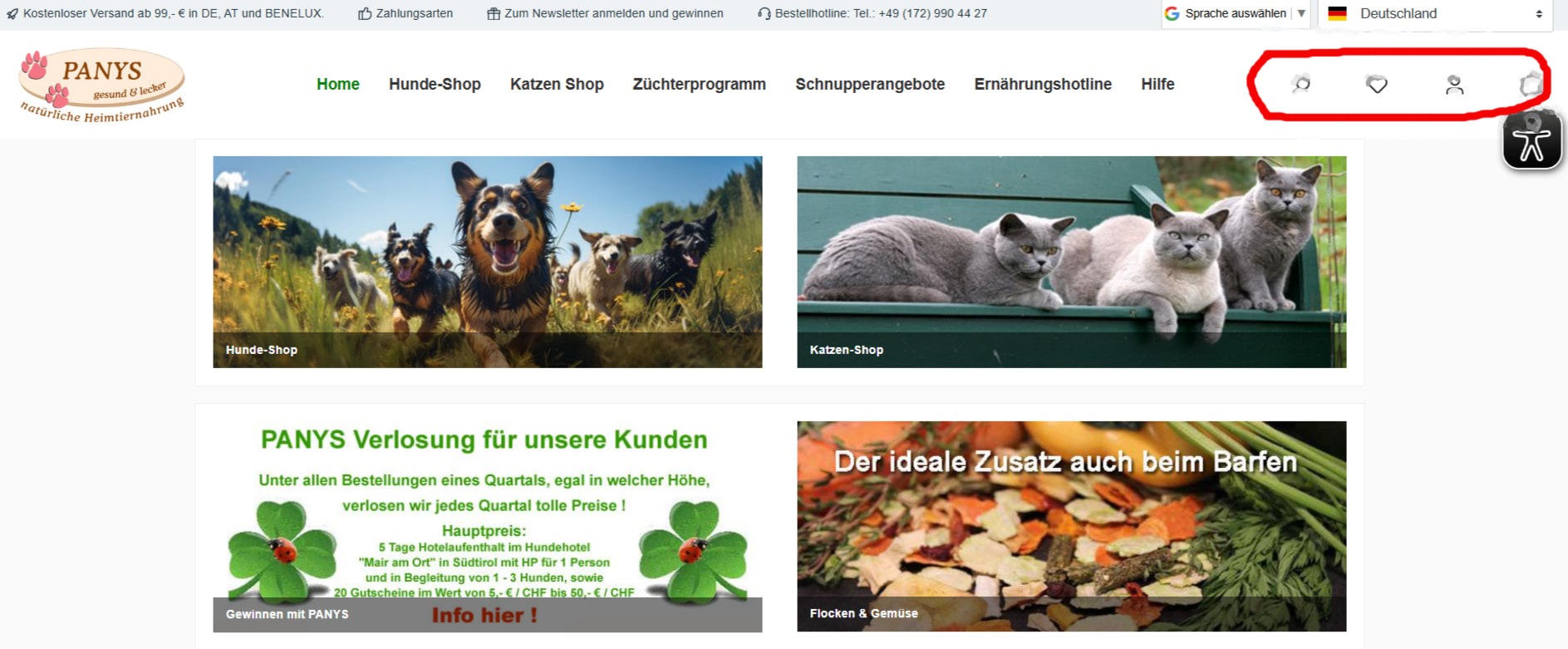 Das persönliche Menü mit Anmeldung, Login ist verschwunden und niemand kann sich mehr anmelden und bestellen.